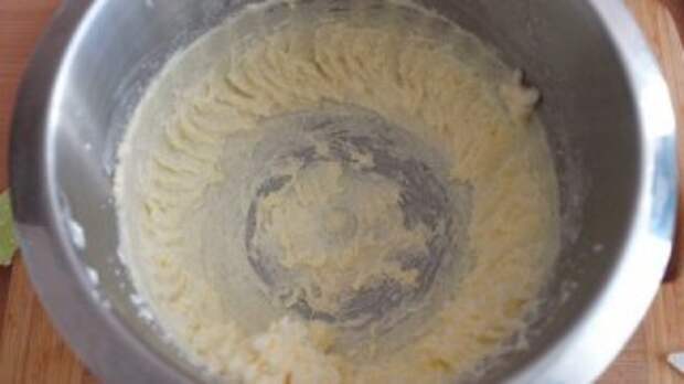 Размягченное сливочное масло взбиваем в течении нескольких минут. Затем постепенно вводим сахар и продолжаем взбивать до однородной массы минут 5.
