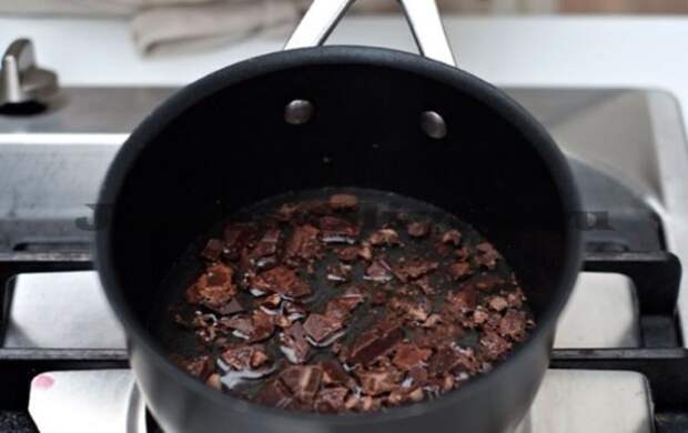 14. Разломайте шоколад на маленькие куски, затем поместите в маленькую кастрюлю с 75 мл воды на плите при высокой температуре.